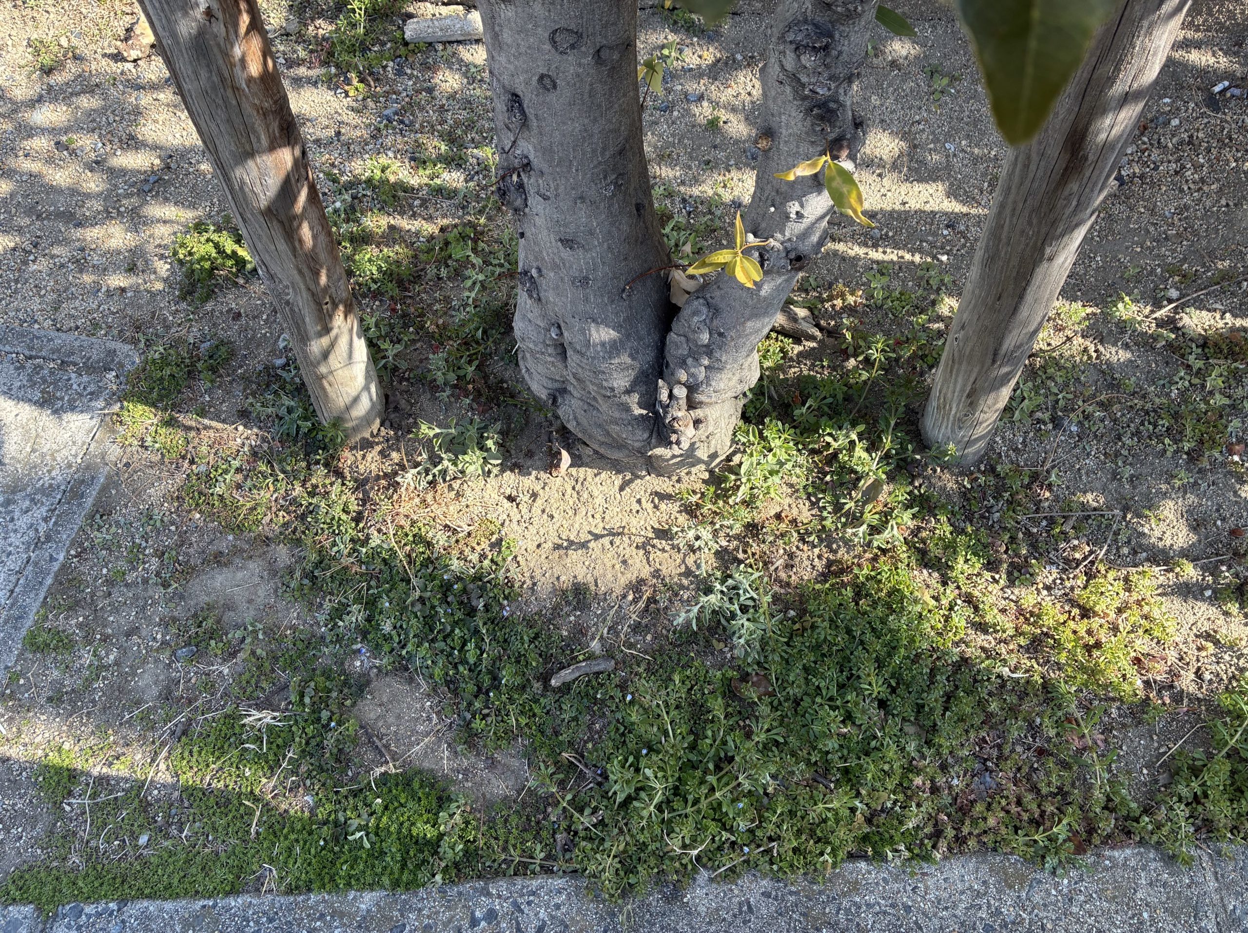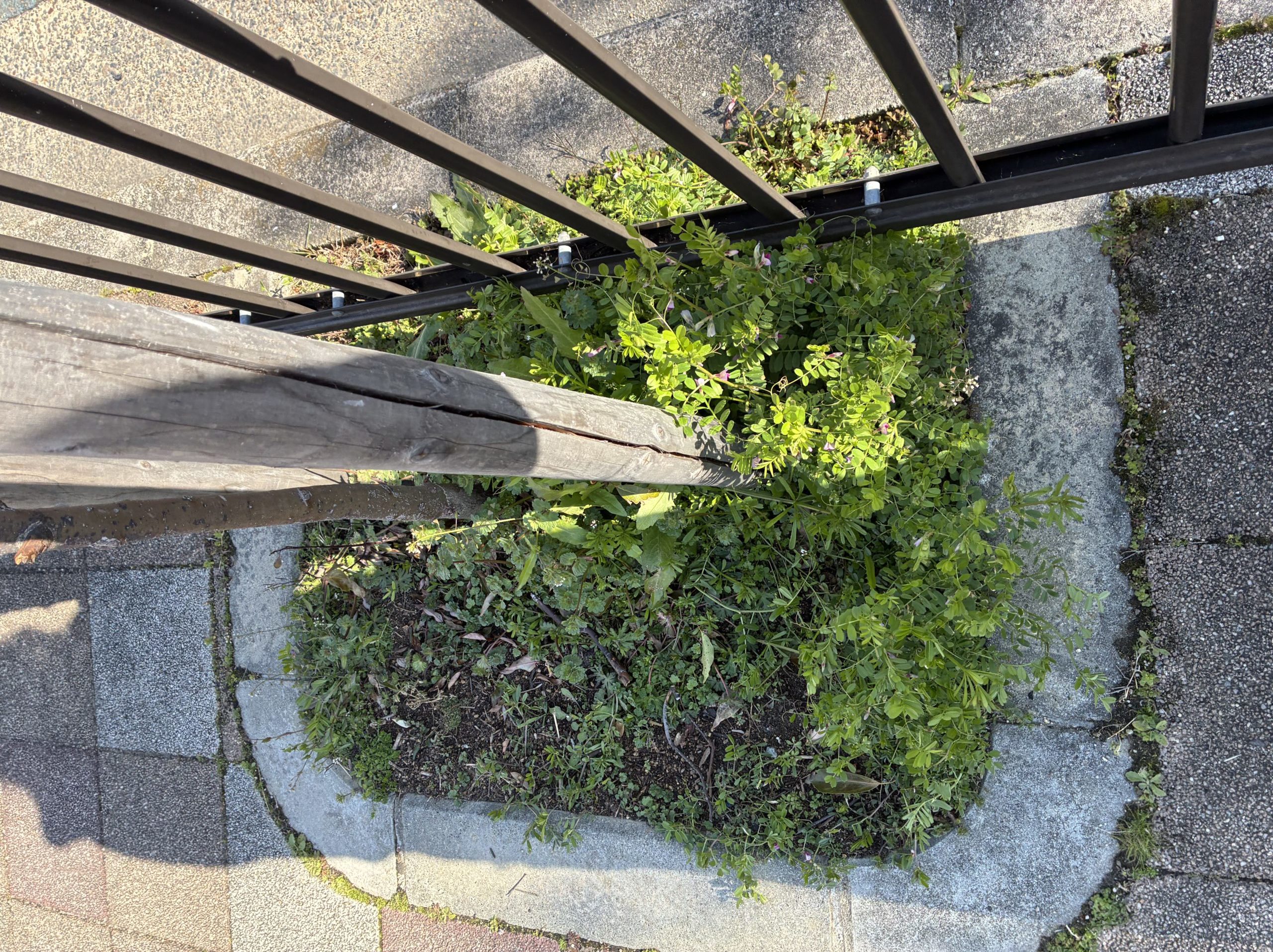 植込みの🌳根元に野草の新芽がァ🌱イッパァ~イッ🌱